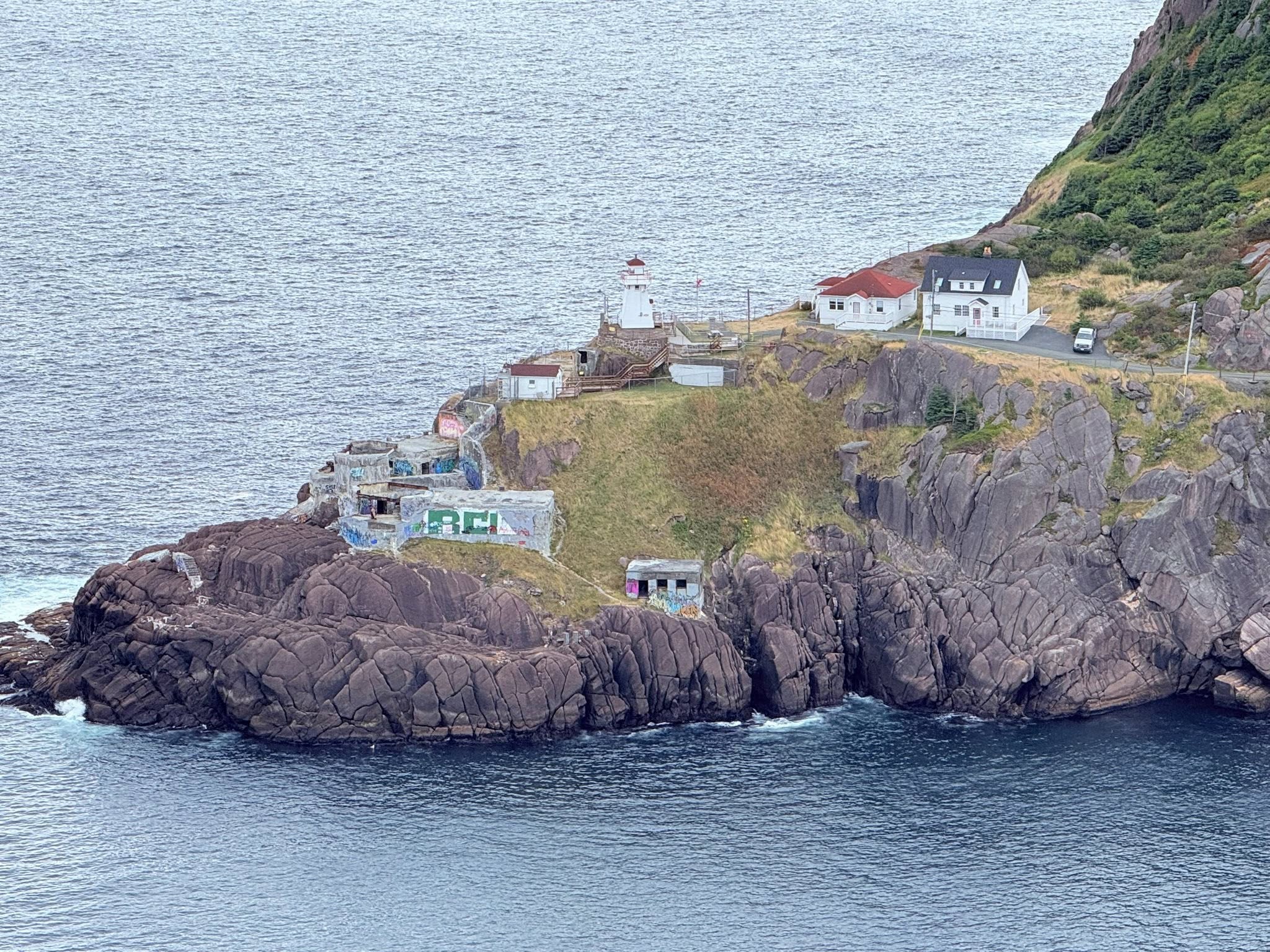 In reality, the drive was smooth, no charging moose, no startled birds, no wild bushes brushing the roadside. The road was well-kept and perfect for a long, scenic journey. But upon reaching Cape Spear, we were met by the rawness of nature: rugged cliffs and a lighthouse that has watched over generations.