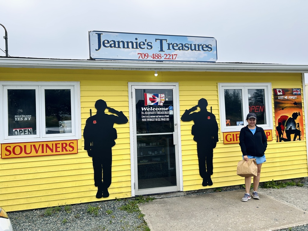 By chance, that belief led me to a colorful, unassuming cottage—a yellow house with a simple sign that read Jeannie's Treasure. Not easy to miss and impossible to ignore once seen. We pulled over, and lo and behold, it was a treasure cove of some of Newfoundland’s finest souvenir pieces.